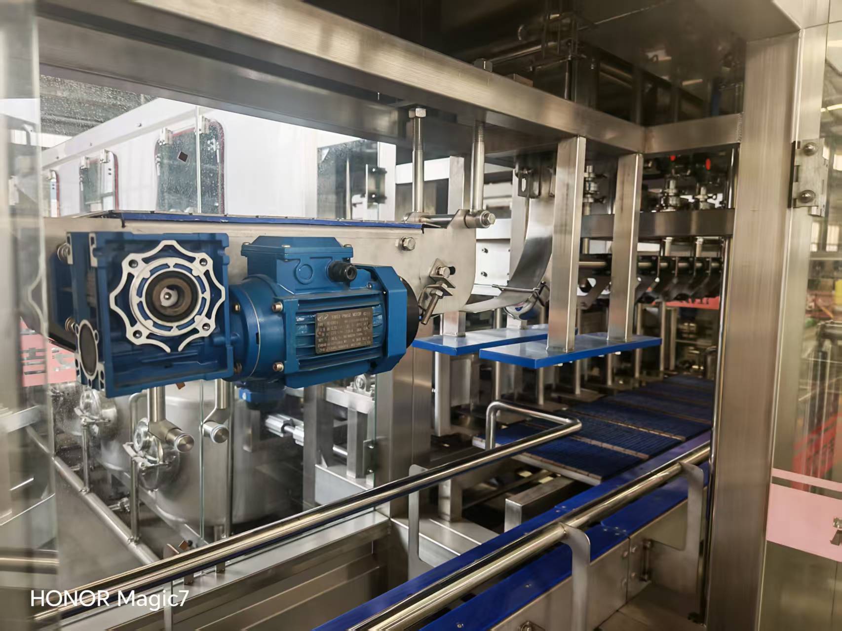 套蓋和壓蓋全過程均在封閉隧道內進行,有效地防止純凈水在灌裝過程中可能發生的二次污染,完全符合衛生標準。